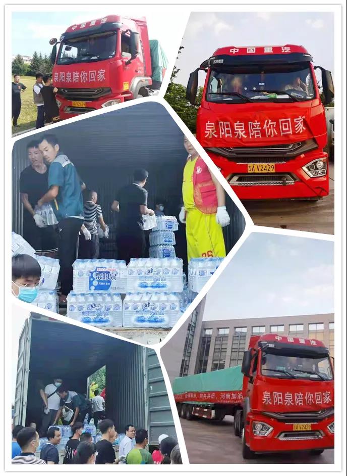 ? ? ? 今年7月中旬,河南省出現(xiàn)持續(xù)性極端強降雨,造成鄭州、新鄉(xiāng)、安陽、鶴壁等多個縣市、鄉(xiāng)鎮(zhèn)受災。河南人民群眾的生命和財產(chǎn)安全受到威脅。洪水肆虐,災情牽動著全國人民的心。2021年7月25日,吉林森工集團泉陽泉飲品有限公司從泉陽工廠整裝出發(fā),穿越1800公里,馳援鄭州,為河南人民送去必要的救災物資。