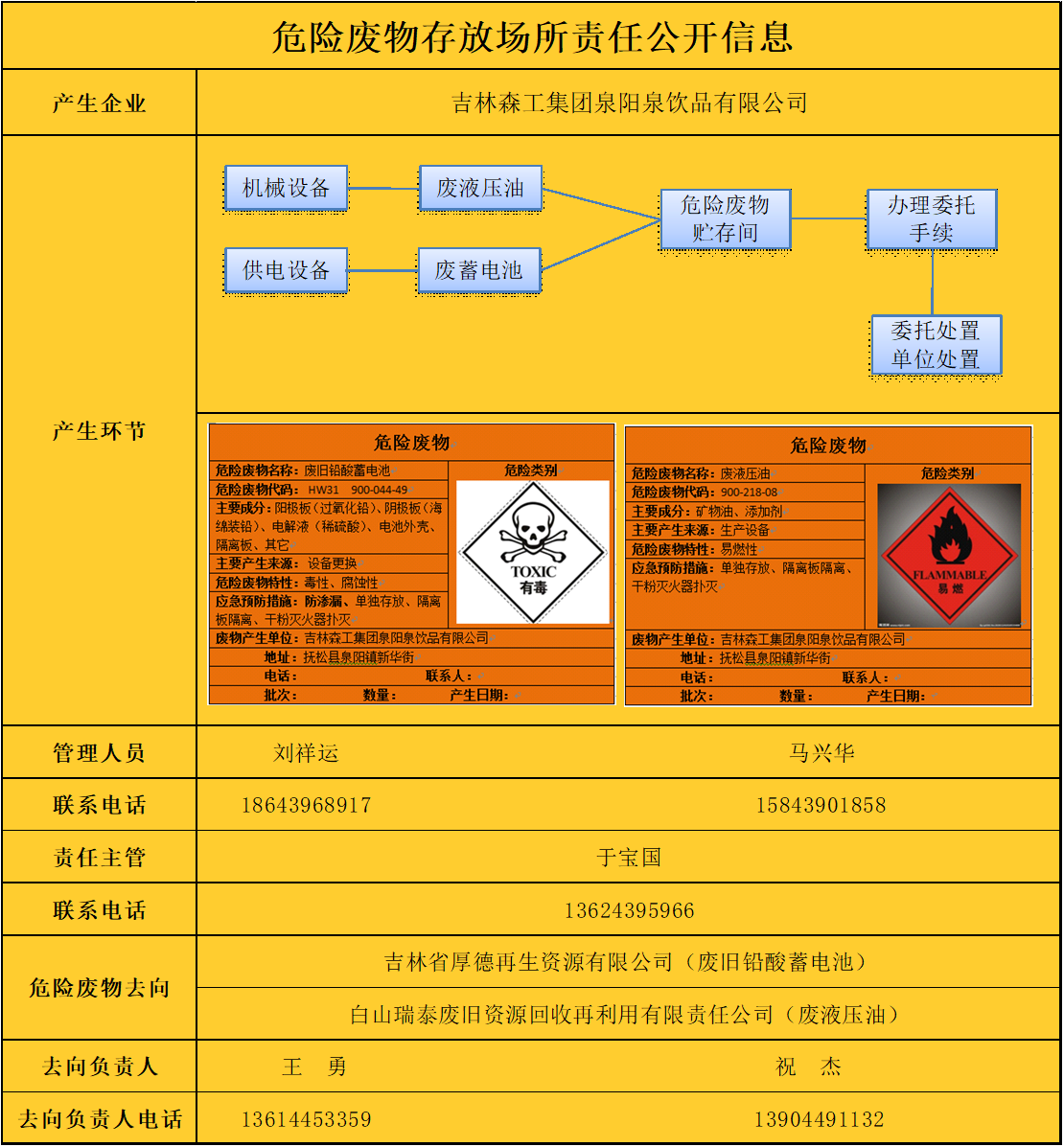 危險(xiǎn)廢物存放場(chǎng)所責(zé)任公開信息表如下:
